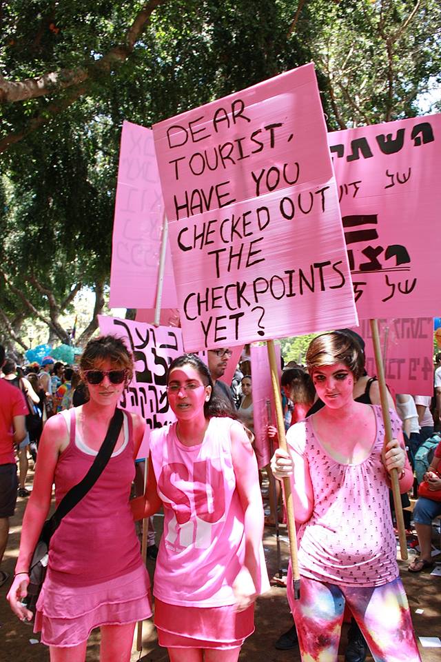 It is also interesting to note that the protest falls on a Friday. As it is, Fridays in Israel and Palestine are already a day of extreme contrasts. In Israel, it is the first day of the weekend–in the religious cities, like Jerusalem, they do the last of their shopping before Shabbos dinner and Shabbat at sundown. In the more secular cities, like Tel Aviv, Israelis of all ages enjoy the day off in the sun on the beach, swim in the warm sea, laze on the beach and play bongo drums late into the night as a festive, musical accompaniment to Shabbat.