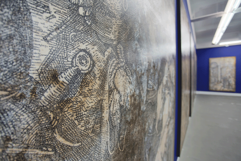 Delving into the Susanto’s work, you can notice a focus towards the key figures and moments of the history of interaction between East and West. Susanto’s vast knowledge of history both of Europe and Asia and his philological attention for detail are not merely conceptual. His work has a very attractive formal aspect to it, conveying sensuality through colours and scents (like in the series Mata Hari and Sea of Spices) or surprising the viewer (like in “The Java of Dürer” where Dürer’s “The Men’s Bath” at a closer inspection is composed of a script from “The History of The Land of Java”).